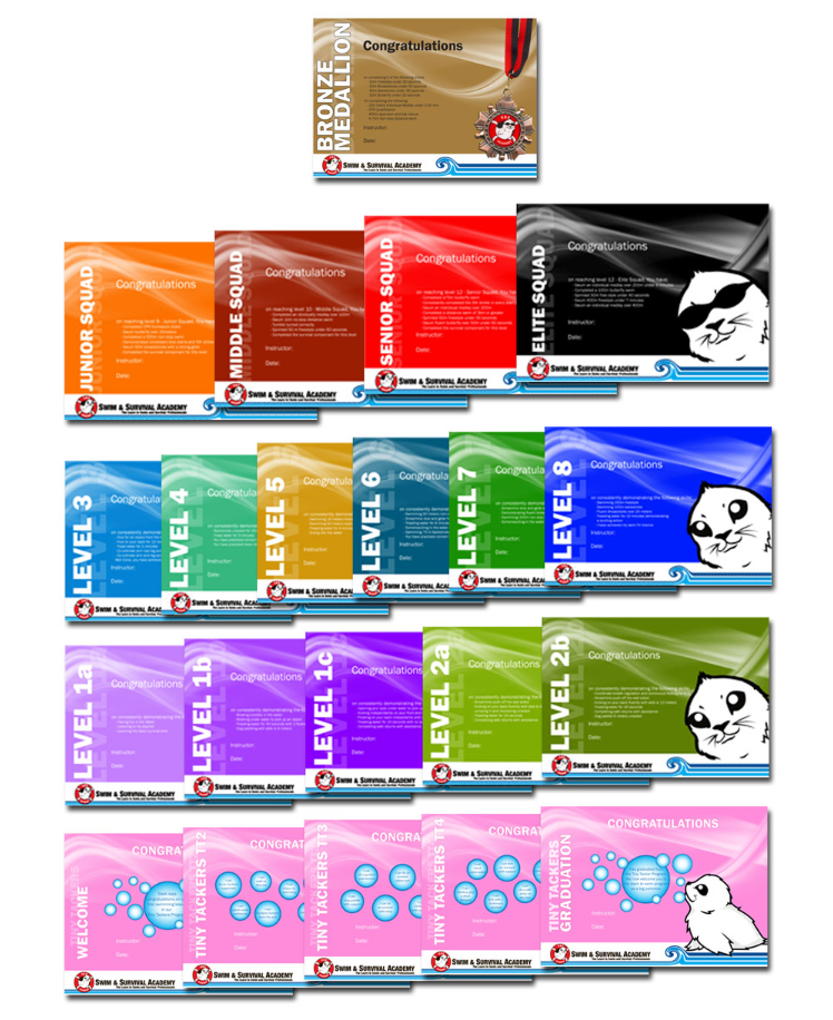 If you are just starting out your swimming journey with us, you will recieve a Progress Booklet to house all of your upcoming certificates your child will achieve. If you happen to loose your booklet, a replacement booklet can be purchased from the reception desk on arrival to your next lesson.